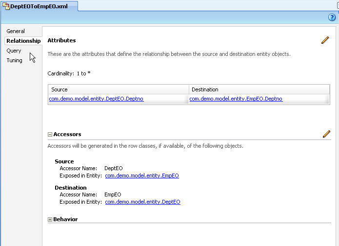 iii. Create a VO (say EmpDeptVO) joining these two EOs. Make EmpEO as base entity and DeptEO as referenced entity.
