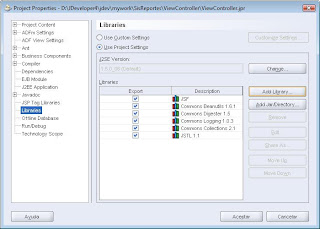 Vamos al proyecto ViewController darle doble clic y agregaremos las librerias,darle clic al boton add Jar/Directory